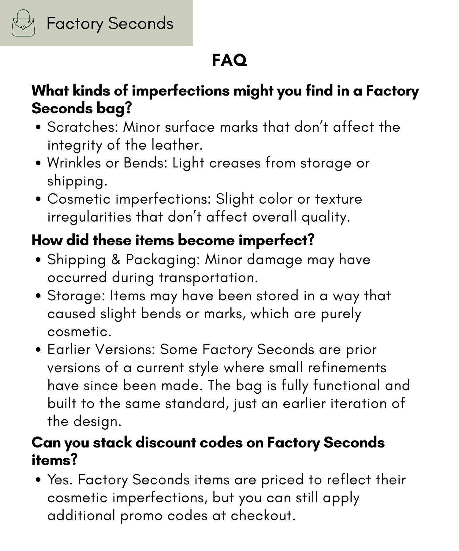 - Keep bags out of direct heat or sunlight for prolonged periods. These elements will prematurely cause leather to dry out, crack or fade.